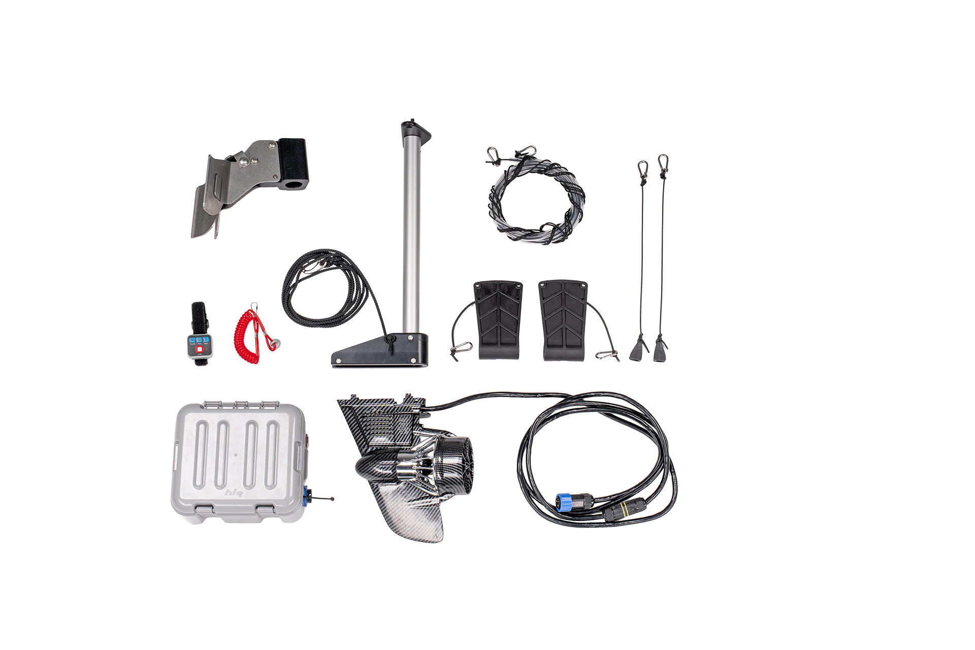 The bracket is simply inserted into the fittings at the rear. The battery is stored in the rear of the boat.