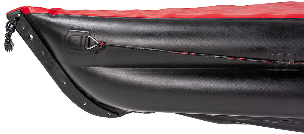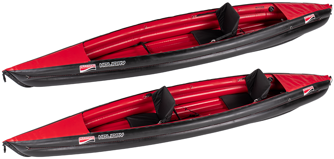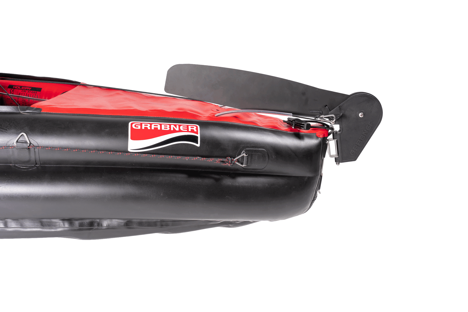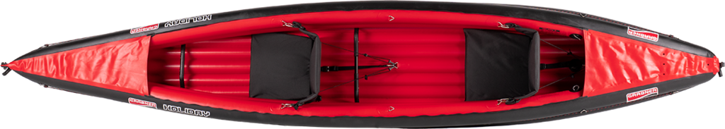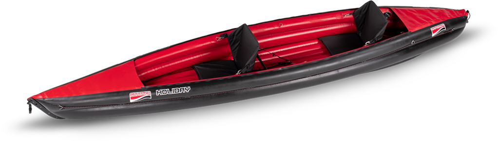 The seat distance can be adjusted for one or two persons up to 176 cm – for two tall people or three paddlers we recommend the HOLIDAY XL model. The seat is fixed to the bottom for best support and direct power transmission. The reinforced backrest relieves the upper body during relaxed paddling. To stay dry in case of splashing water the seat padding is increased in height.