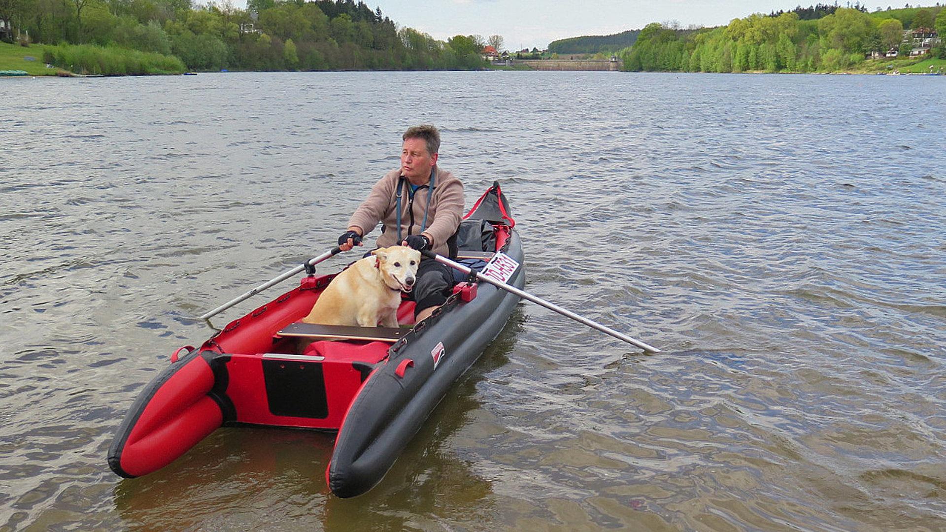 The unique canoe with motor drive. Easy to paddle, fast with motor
