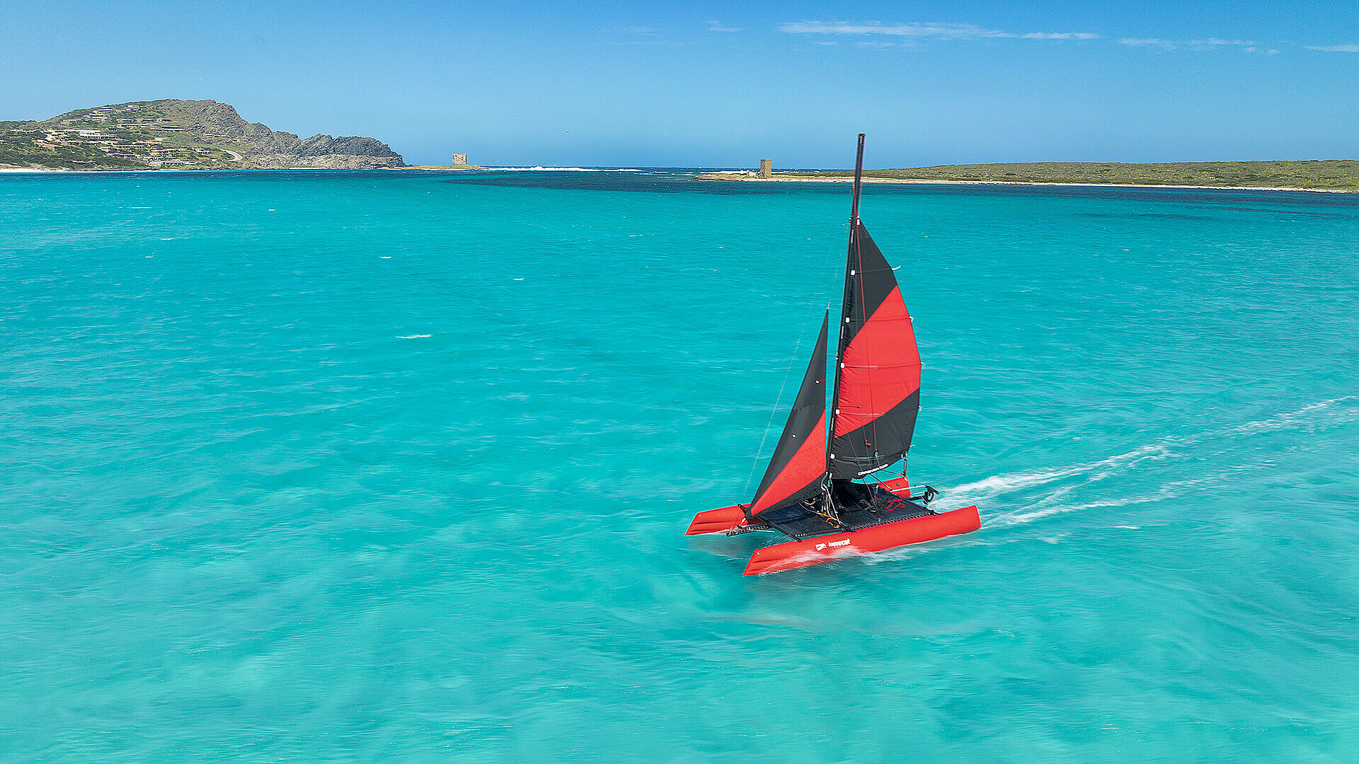 The result? The catamaran glides effortlessly even in light winds. In stronger winds, average speeds can increase by up to 30%, with top speeds exceeding 16 knots.